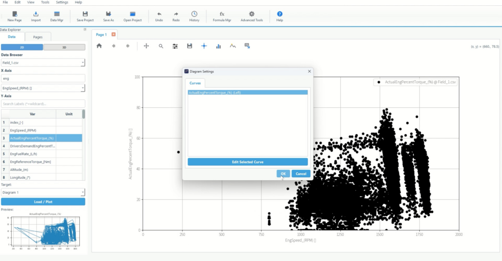 - 対象のトレース(縦軸にした項目)を選び、Edit Selected Curve を開きます