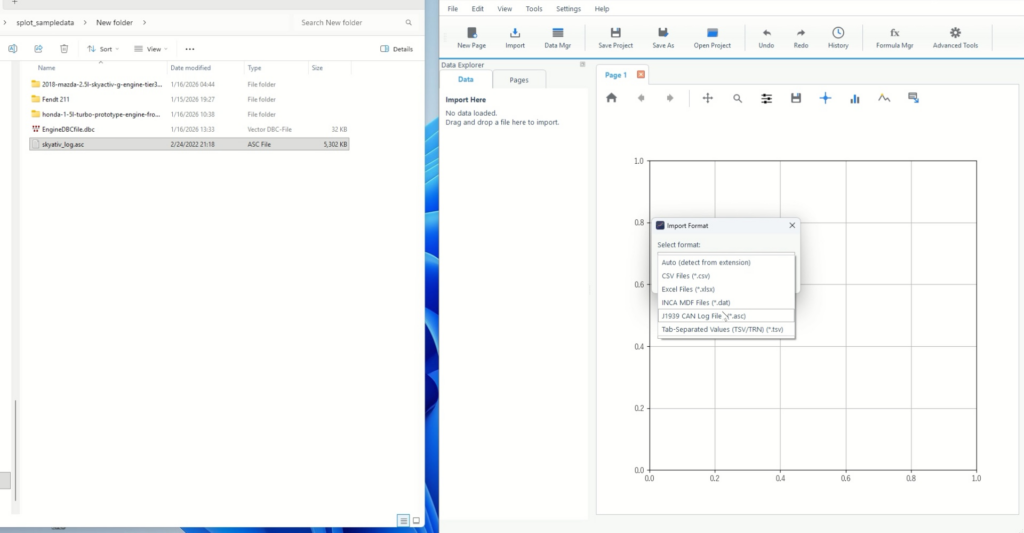 - ASCファイル(その他のテキスト形式ファイルも可):CANログ(例:Vector形式のログ)