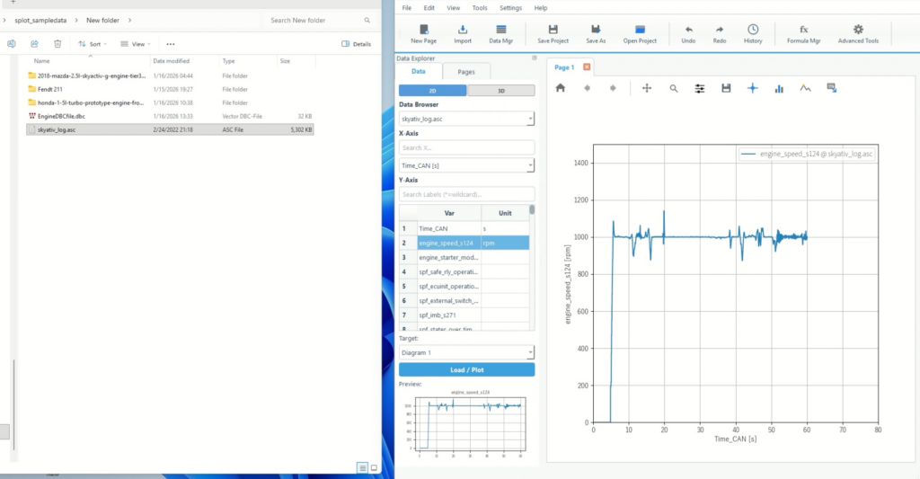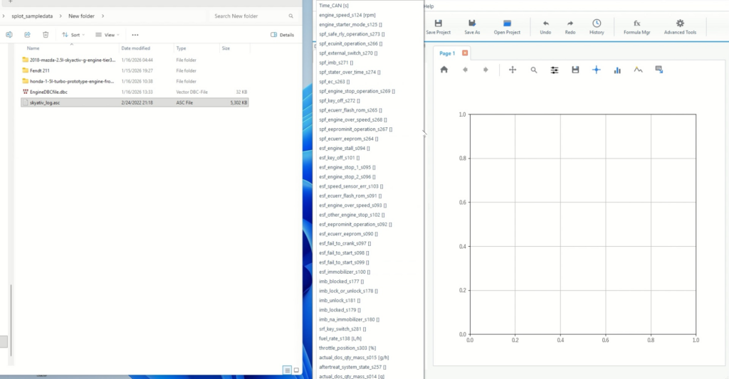 要点:ASCを取り込み、DBCを選び、Time_CANを横軸にしてプロットします